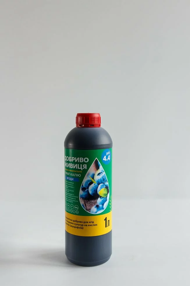 ДОБРИВО ЖИВИЦЯ Гумат Калію (ягоди) – це високоефективне органо-мінеральне добриво з мікро- та макроелементами у хелатній формі, яке володіє властивостями стимулятора та регулятора росту рослин і являється антидепресантомдля ягід та плодових культур, які ростуть на кислих грунтах (ацидофілів).